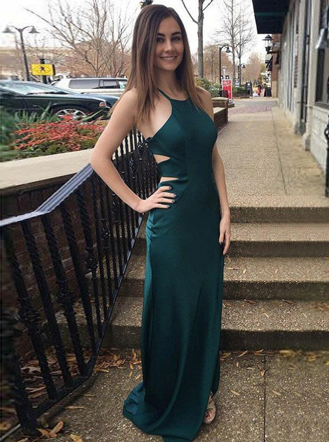 Backless Dark Green Satin Junior Prom Dress GTEEN133