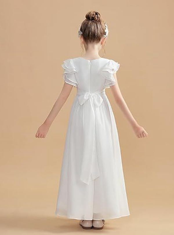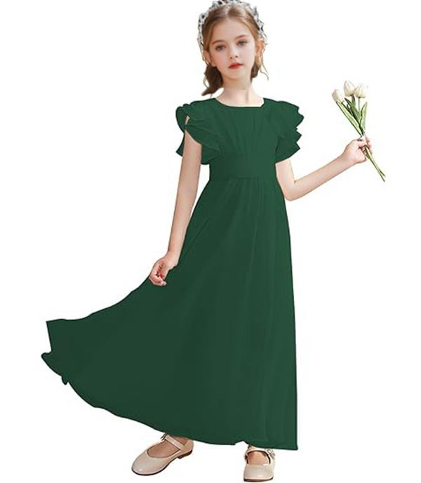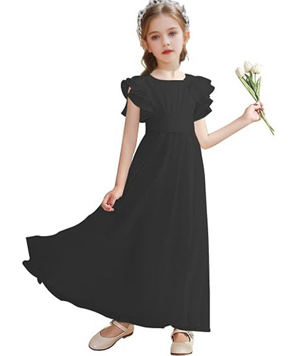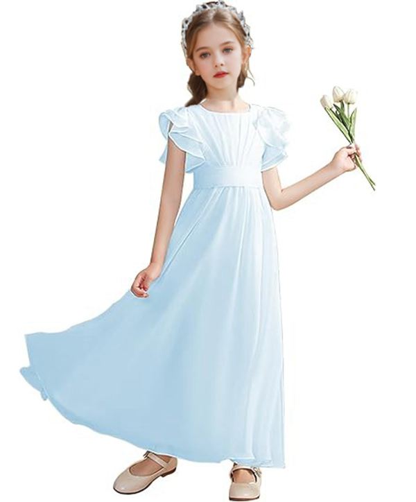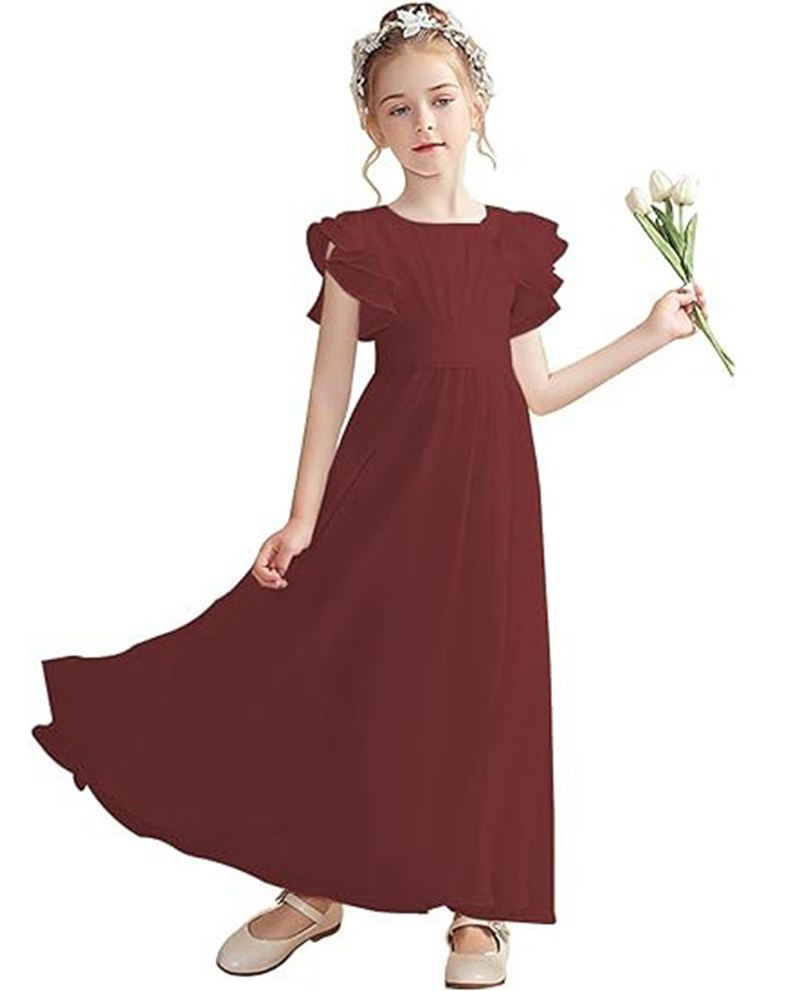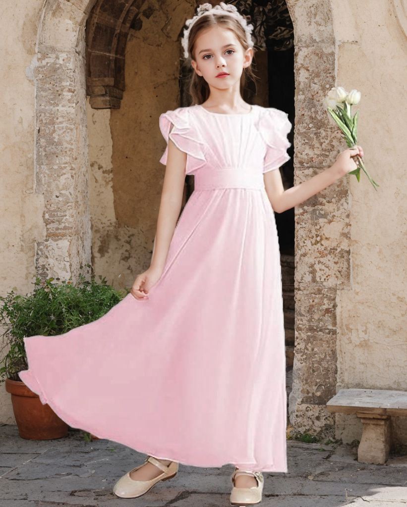 Children Bridesmaids Simple Chiffon Ruffle Flower Girl Dress TXD029