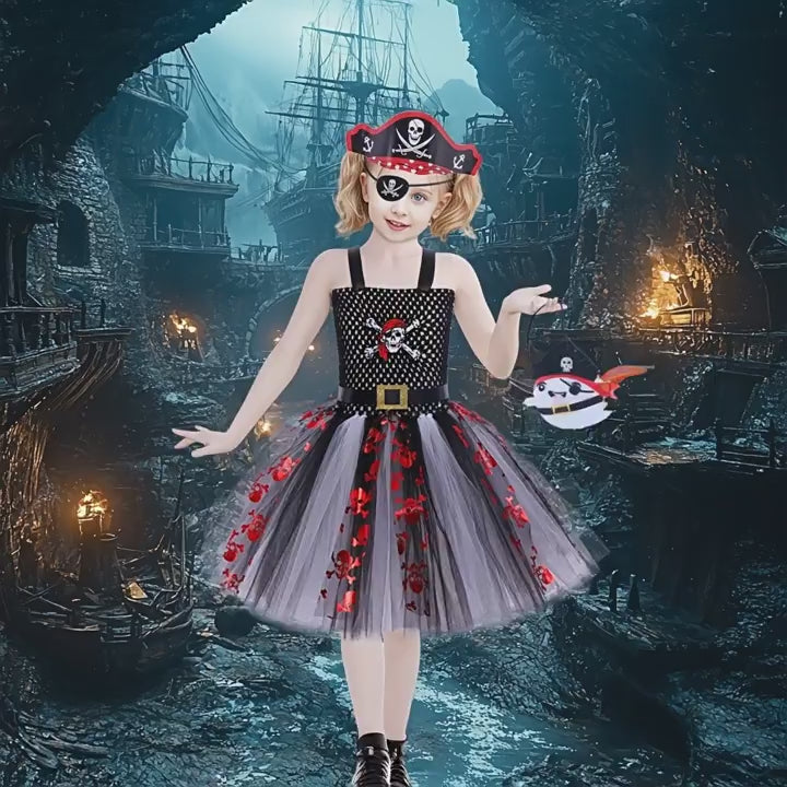 Girls Halloween Pirate Costume Skull Dress UP CST036