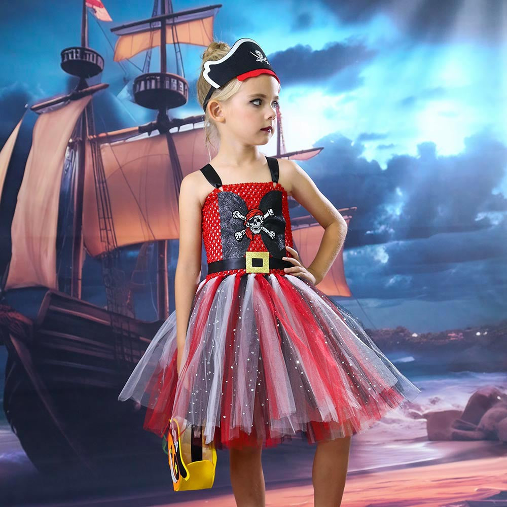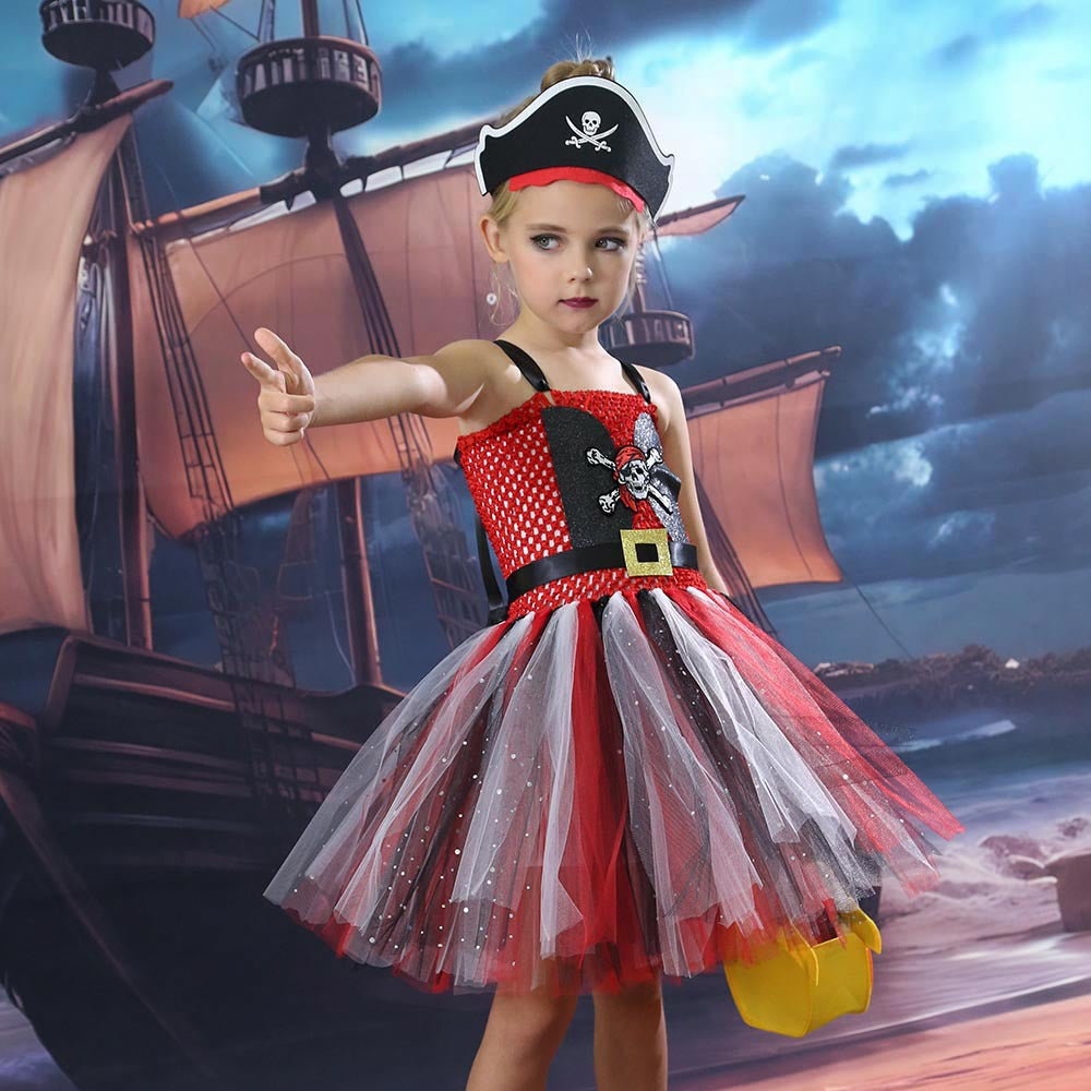 Girls Halloween Skull Costume for Caribbean Pirate Dress UP CST049