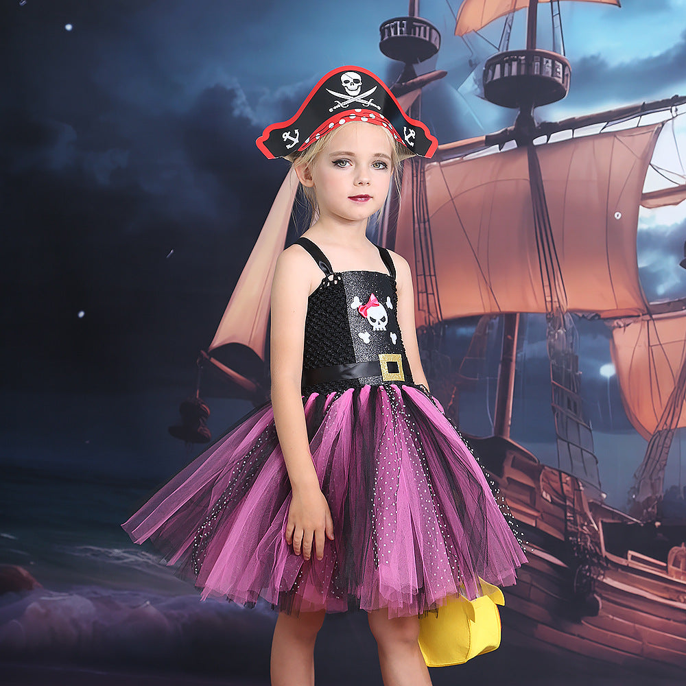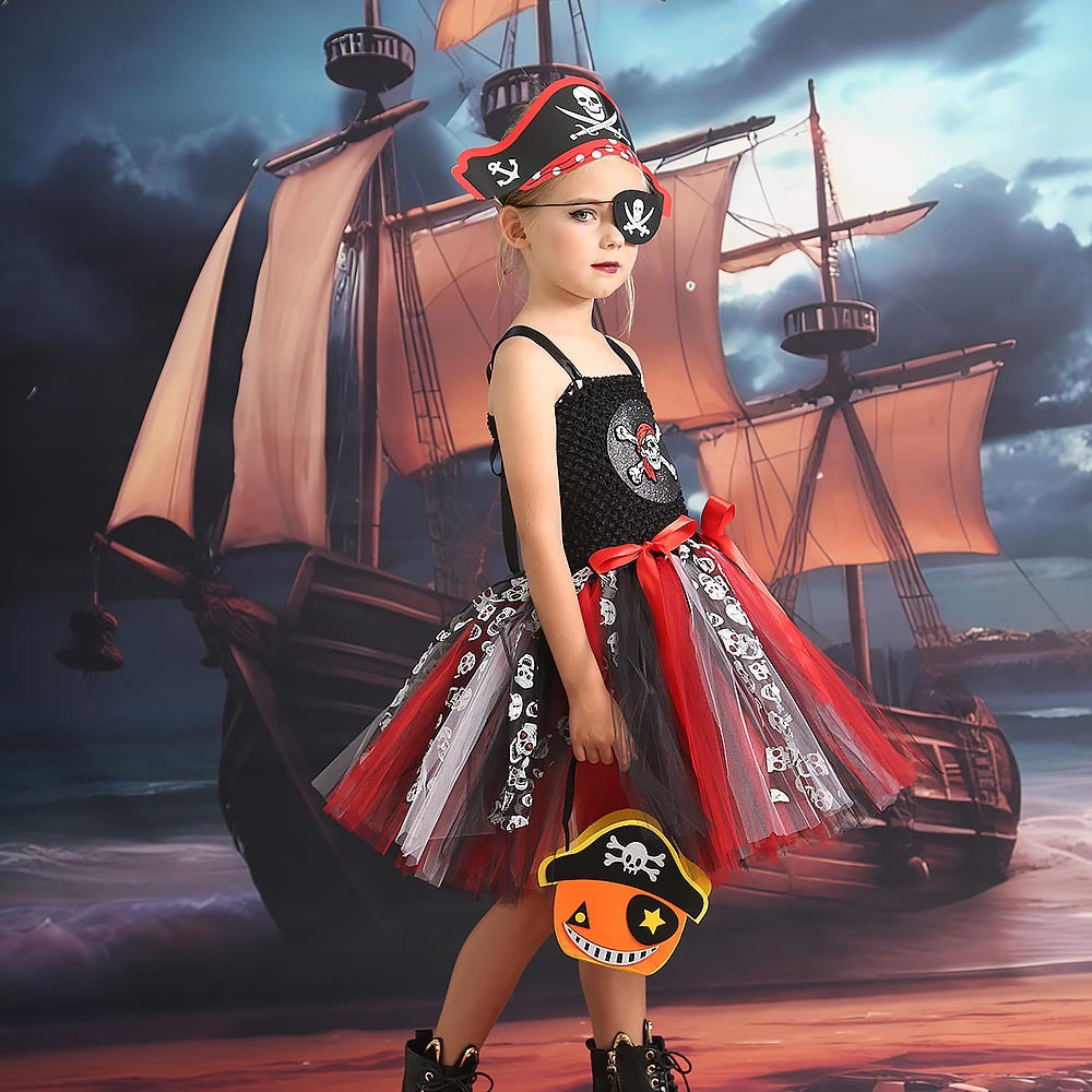 Girls Halloween Skull Costume for Caribbean Pirate Dress UP CST050