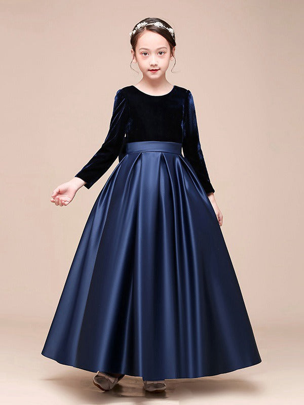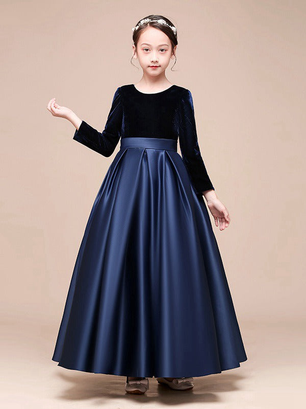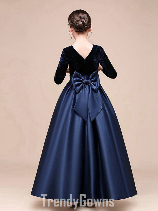 Girls Long Sleeve Navy Blue Party Gown GBCH051
