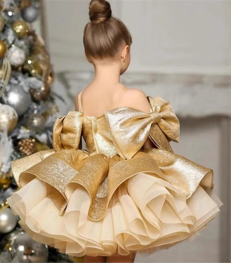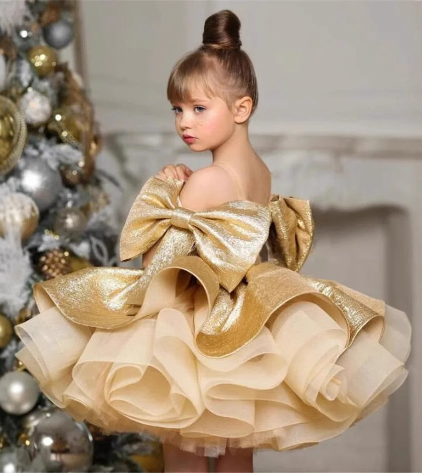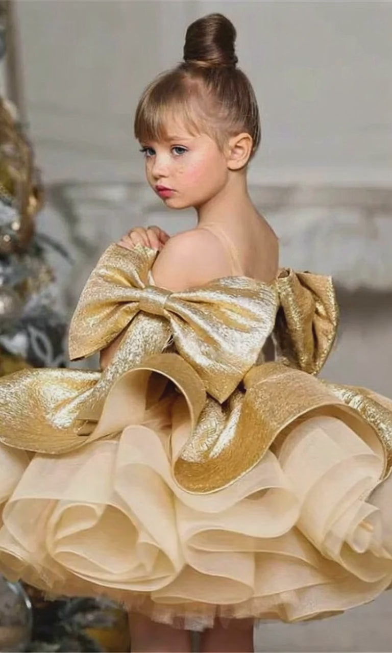 Kiddie Gold Tulle Ball Short Party Dress TXD030