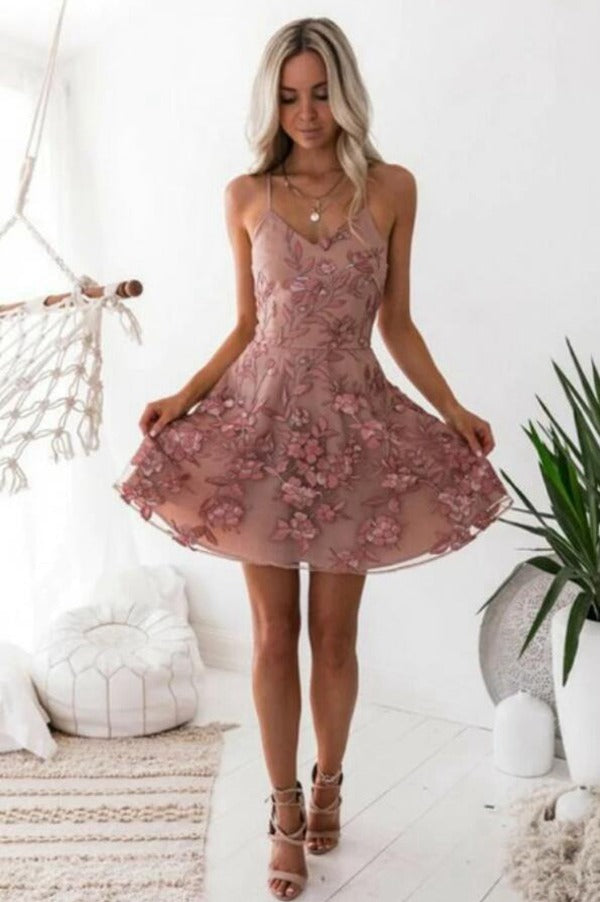 Sexy Straps Pink Mini Short Prom Dress JTSH004