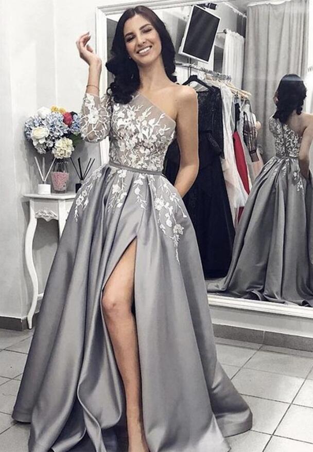 Silver One Shoulder Junior Prom Dress GTEEN076