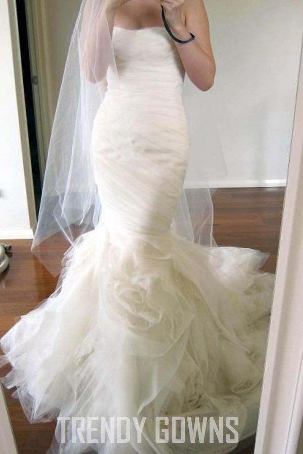 Sweetheart Sweep Train Tiered Mermaid Ivory Wedding Gown TWA1622