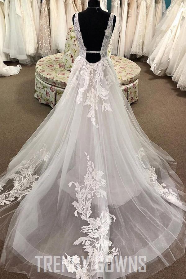Trendy A Line Lace Applique Deep V Neck Wedding Gown TWA4652