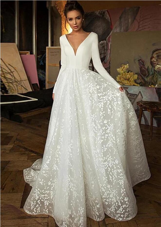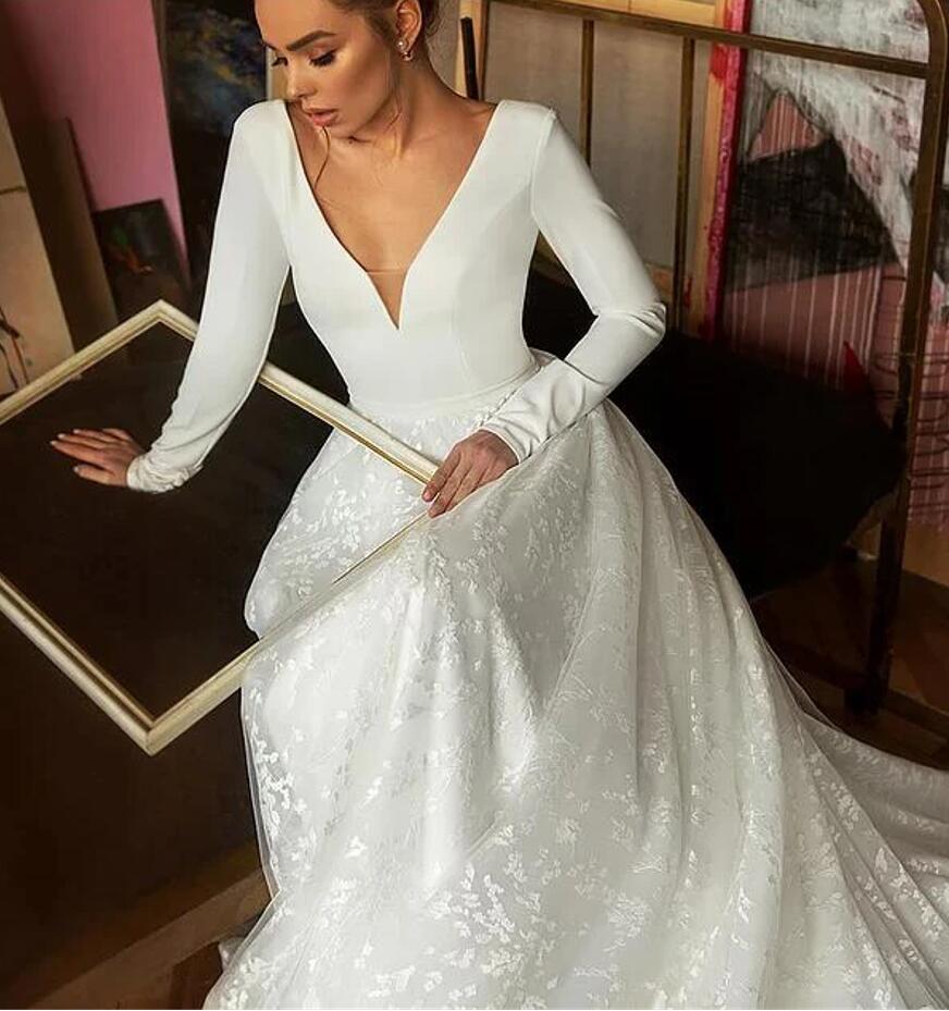Trendy A Line Long Sleeves V Neck After Party Bridal Gown TWA5512