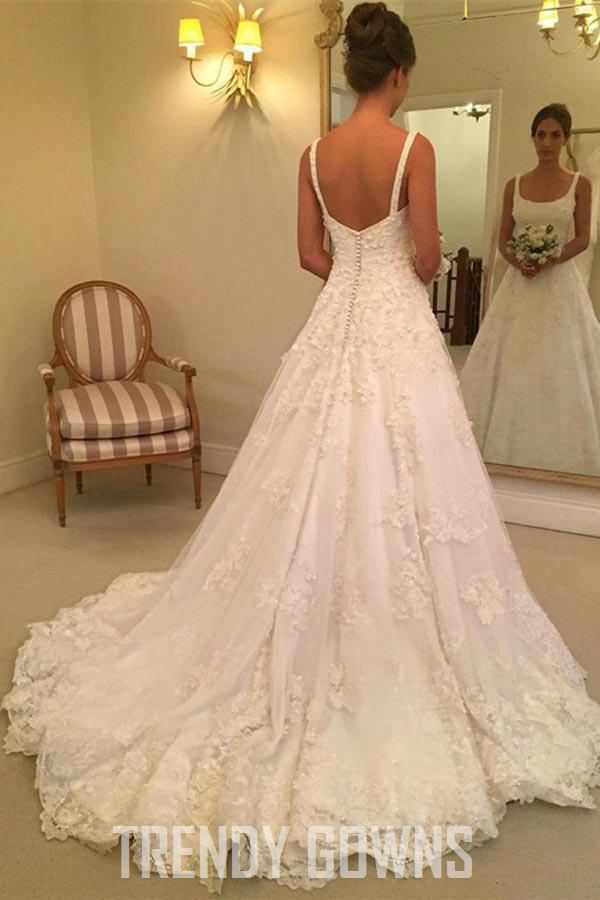 Trendy A-line Scoop Sweep Train Appliques Wedding Gown TWA2182