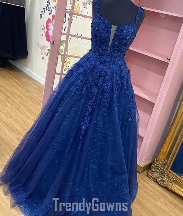 Trendy Dark Blue Lace Beading Prom Dress SREAL042