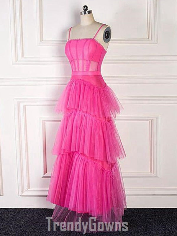 Trendy A-line Fuchsia High Low Prom Gown SREAL048