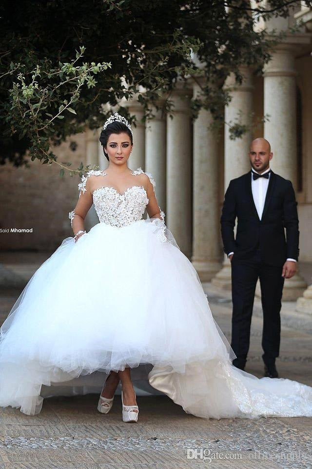 Trendy Long Sleeve Lace Puffy Ball Gown Wedding Gown TWA185
