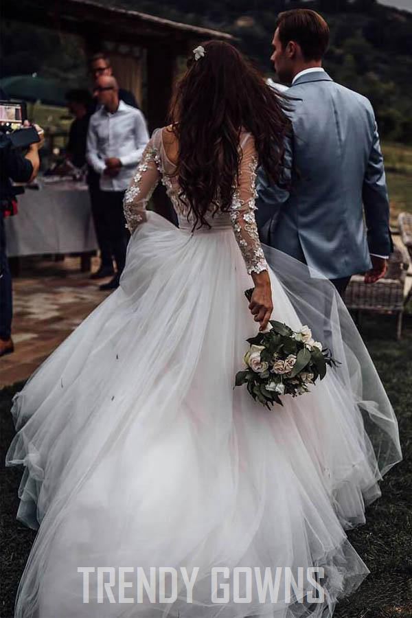 Trendy Long Sleeves Lace Applique Tulle Bridal Gowns TWA3852