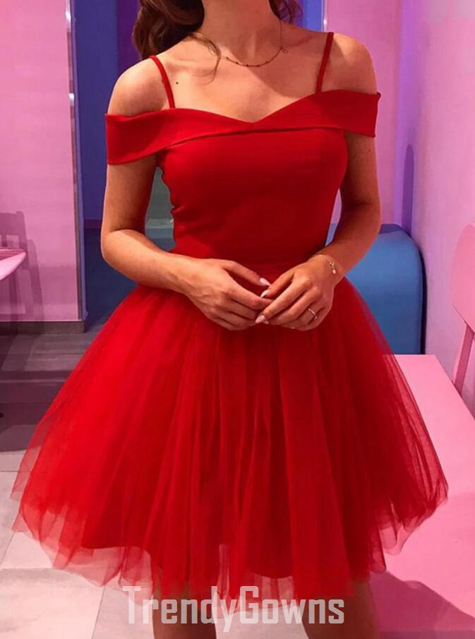 Trendy Off the Shoulder Junior Red Short Prom Dress JTSH128
