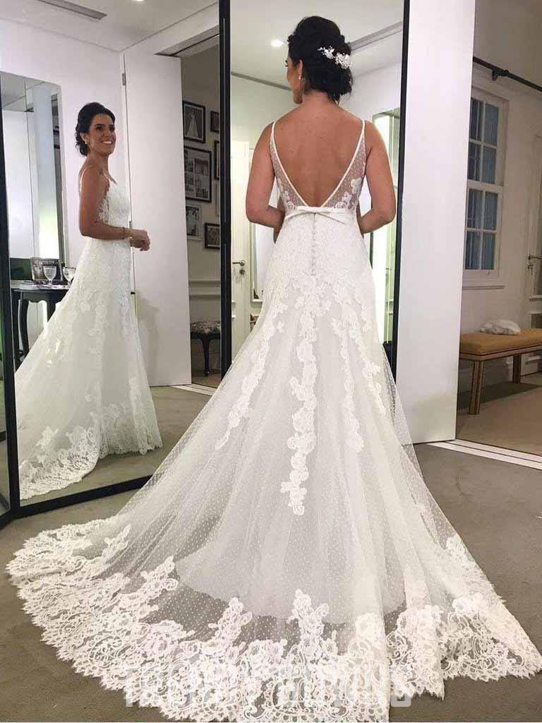 Trendy Spaghetti Strap Lace Wedding Gown TWA4282