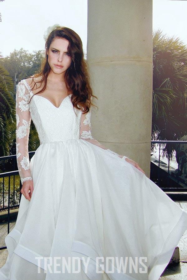 Trendy V Neck Long Sleeve Lace Organza Wedding Gown TWA1252