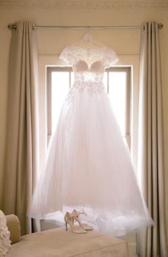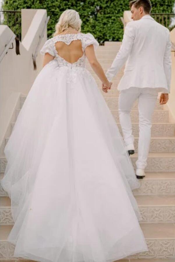 Trendy V Neck Short Sleeve Puffy Ball Gown Wedding Gown TWA186