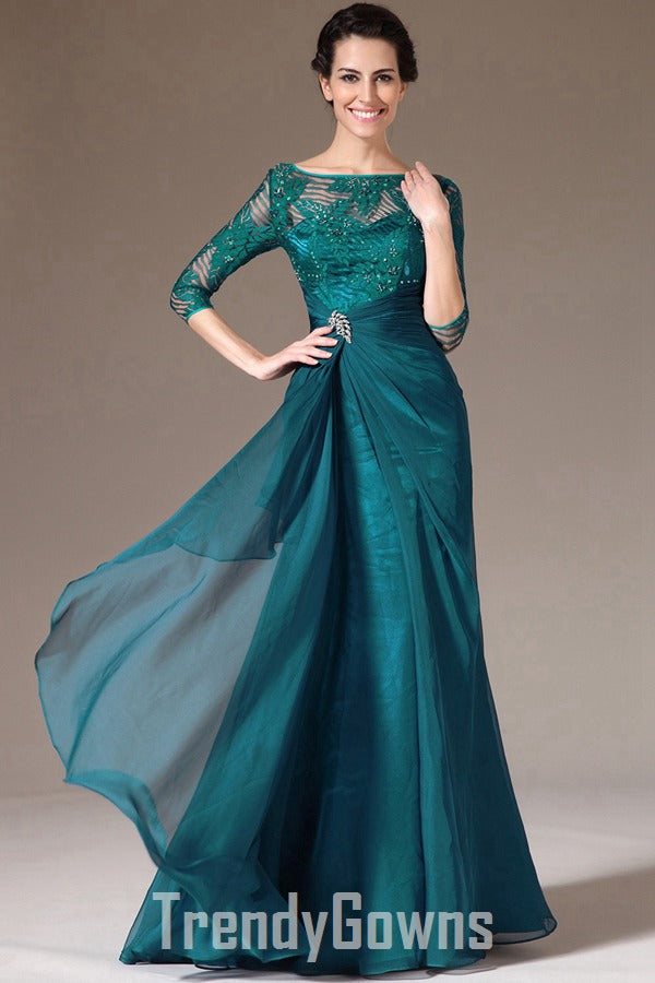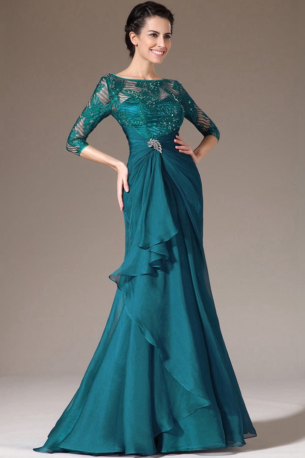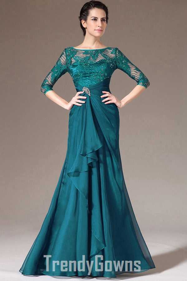 Vintage Ink Blue Half Sleeve A-line Evening Gown for Mother and Ladies JT1331