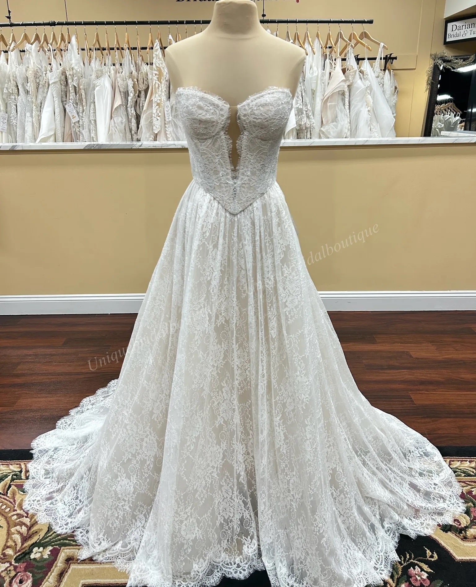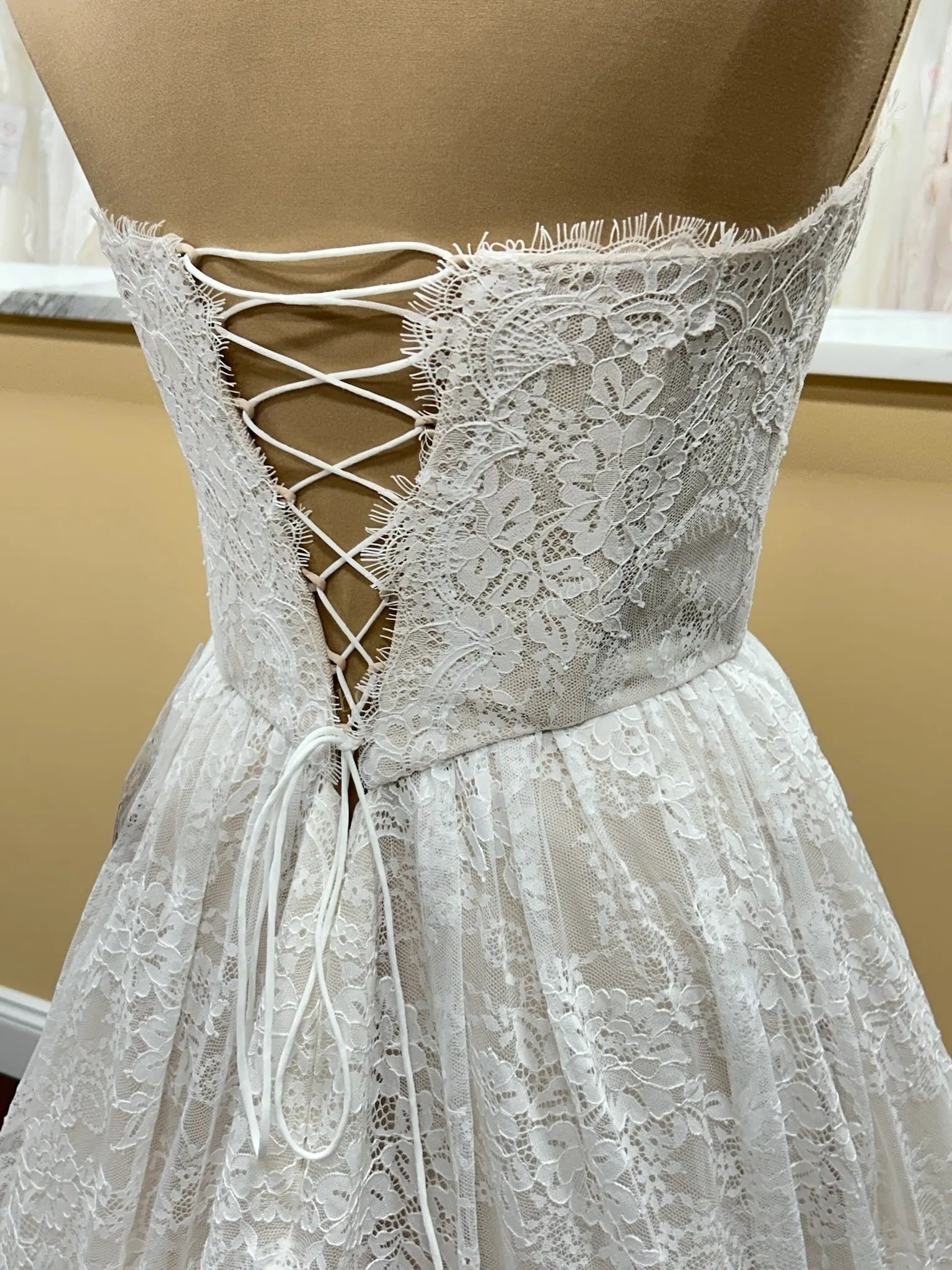 Vintage Lace Chantilly Basque Waist Wedding Dress BWD316